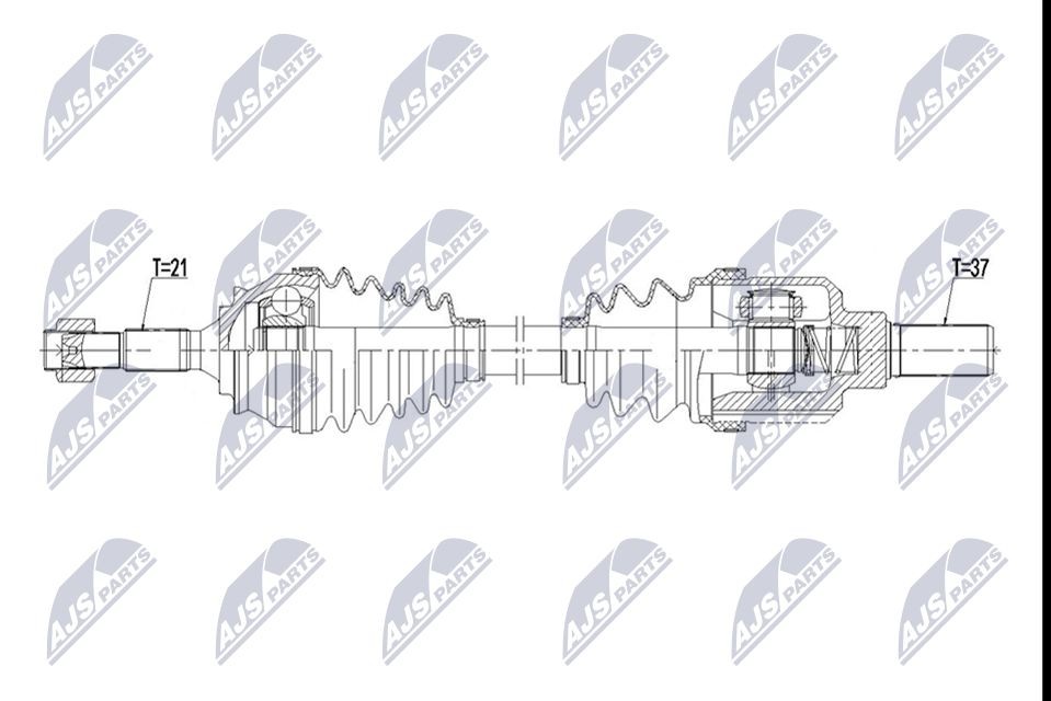 Lato montaggio: Assale anteriore Sx; Modalità di trasmissione: Trasmissione automatica; Dentatura esterna lato differenziale: 37; Dentatura esterna lato ruota: 21; Lunghezza [mm]: 628; Numero di fabbricazione: NPW-CT-175