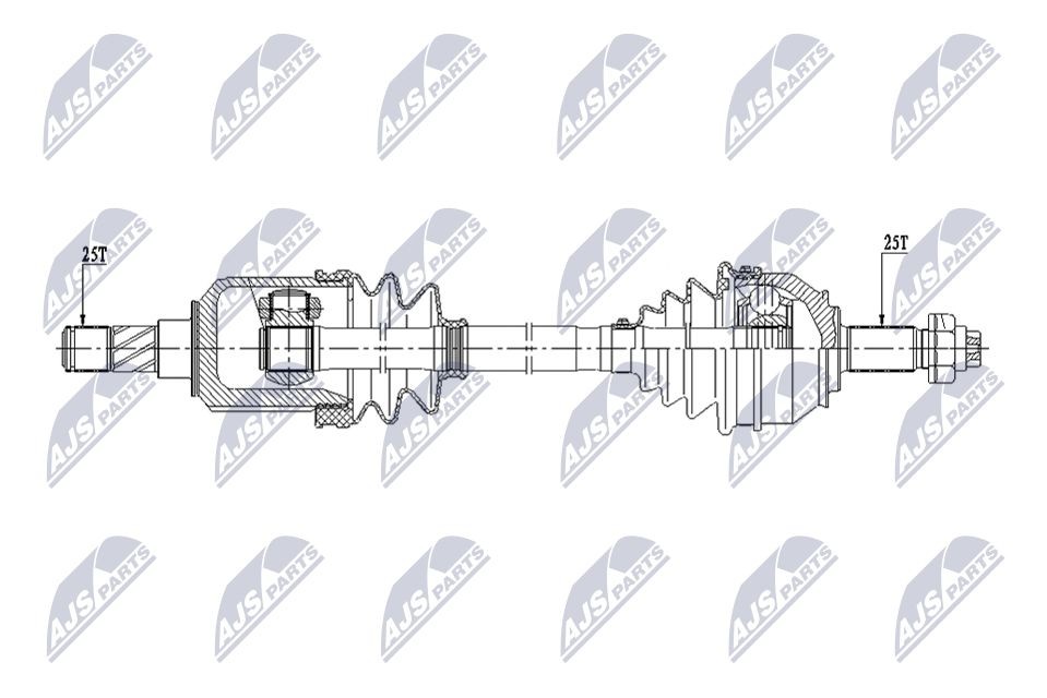 Lato montaggio: Assale anteriore Sx; Dentatura esterna lato differenziale: 25; Dentatura esterna lato ruota: 25; Lunghezza [mm]: 629; Numero di fabbricazione: NPW-FT-111