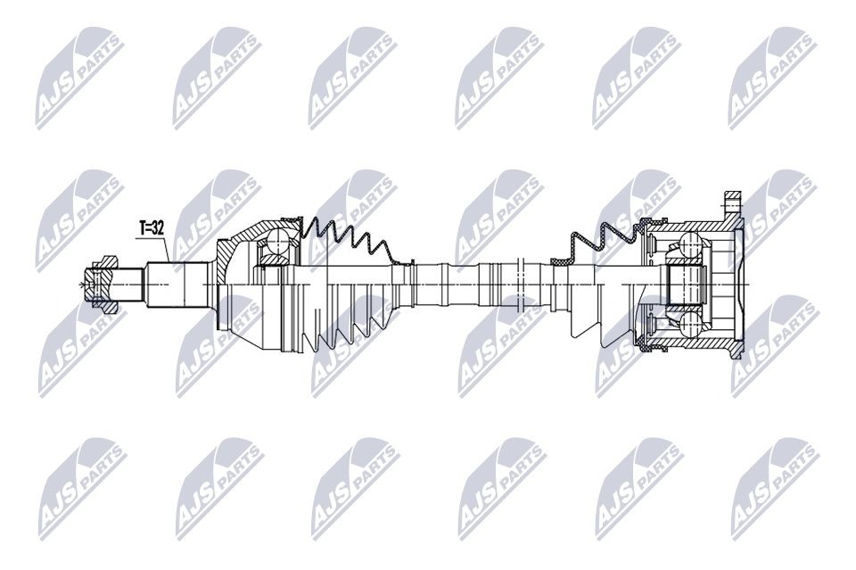 Lato montaggio: Assale posteriore Sx; Modalità di trasmissione: Trasmissione automatica; Dentatura esterna lato ruota: 32; Lunghezza [mm]: 620; Numero di fabbricazione: NPW-NS-183