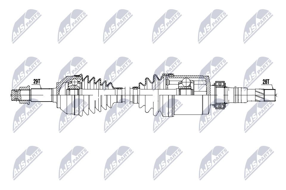 Lato montaggio: Assale anteriore Dx; Modalità di trasmissione: Cambio manuale; Dentatura esterna lato differenziale: 26; Dentatura esterna lato ruota: 29; Lunghezza [mm]: 944; Numero di fabbricazione: NPW-NS-202
