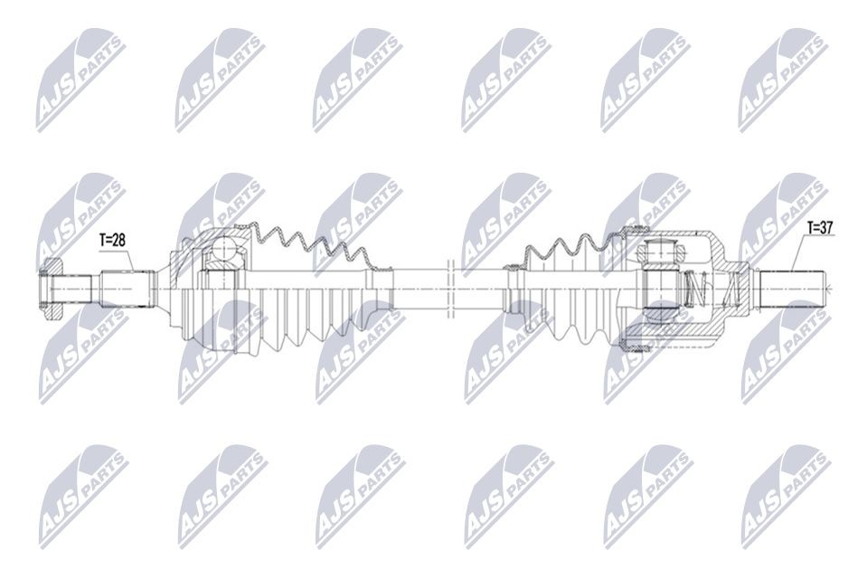 Lato montaggio: Assale anteriore Sx; Modalità di trasmissione: Cambio automatico a 6 marce; Dentatura esterna lato differenziale: 37; Dentatura esterna lato ruota: 28; Lunghezza [mm]: 605; Numero di fabbricazione: NPW-PE-134