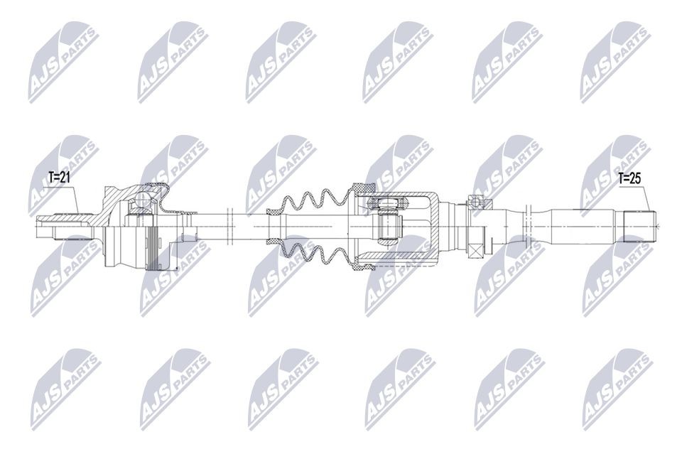 Lato montaggio: Assale posteriore Dx; Modalità di trasmissione: Cambio automatico a 8 marce; Tipo di trasmissione: BVA8; Dentatura esterna lato differenziale: 25; Dentatura esterna lato ruota: 21; Lunghezza [mm]: 914; Numero di fabbricazione: NPW-PL-190