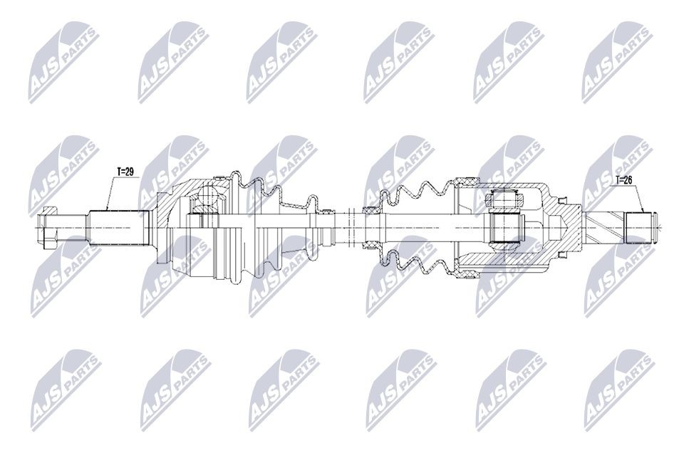 Lato montaggio: Assale anteriore Sx; Modalità di trasmissione: Cambio manuale; Dentatura esterna lato differenziale: 26; Dentatura esterna lato ruota: 29; Lunghezza [mm]: 723; Numero di fabbricazione: NPW-RE-229