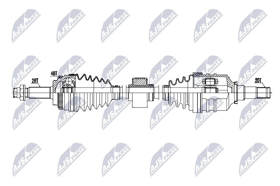 Lato montaggio: Assale anteriore Dx; Dentatura esterna lato differenziale: 20; Dentatura esterna lato ruota: 26; Lunghezza [mm]: 925; Numero di fabbricazione: NPW-TY-224; N° denti: 48