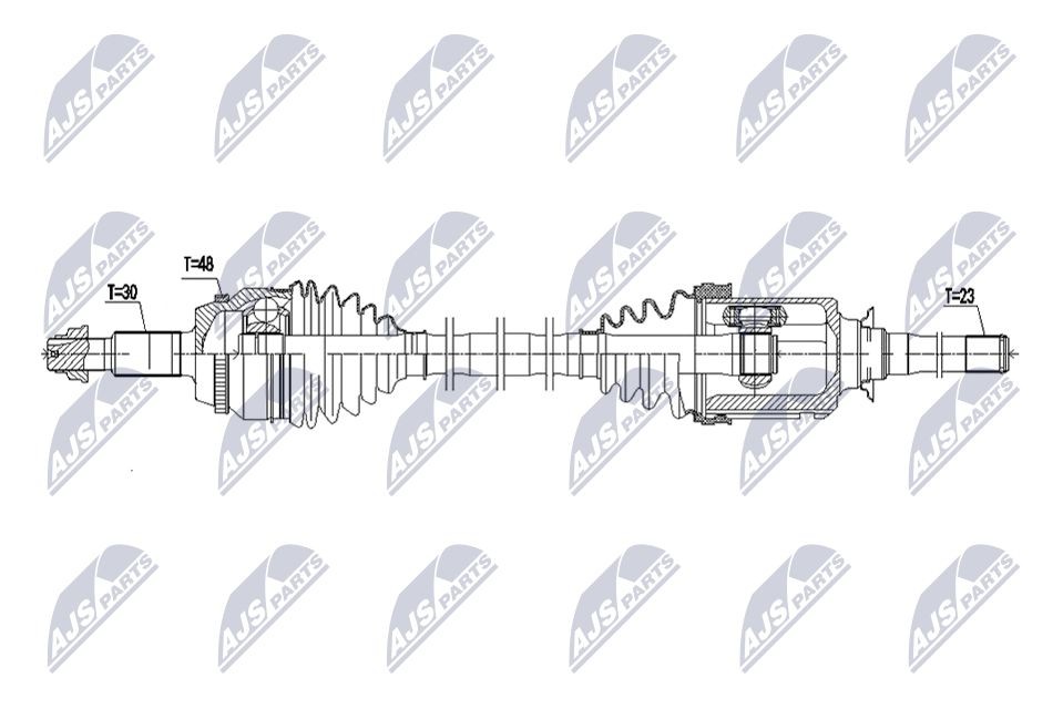 Lato montaggio: Assale anteriore Dx; Modalità di trasmissione: Trasmissione automatica; Dentatura esterna lato differenziale: 23; Dentatura esterna lato ruota: 30; Lunghezza [mm]: 996; Numero di fabbricazione: NPW-TY-251; N° denti: 48