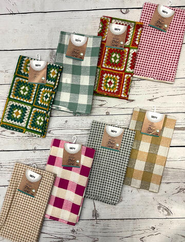 Coppia di strofinacci da cucina 100% cotone eco friendly.Disponibile in diverse fantasie: crochet, quadretti piccoli, quadri grandi.Le fantasie e i colori variano in base alla disponibilità del momento.Misura: 50×70 cm ** E' POSSIBILE CONTATTARCI O SCRIVERE NELLE NOTE DELL'ORDINE UNA PREFERENZA DI FANTASIA E COLORE.