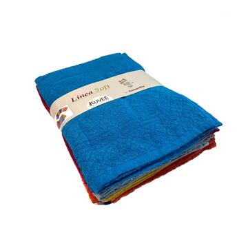 Confezione di asciugamani composto da 6 pezzi ospite (40x55cm) + 6 pezzi viso (55x100cm) in spugna di cotone. Disponibile in colori assortiti, una coppia per colore.