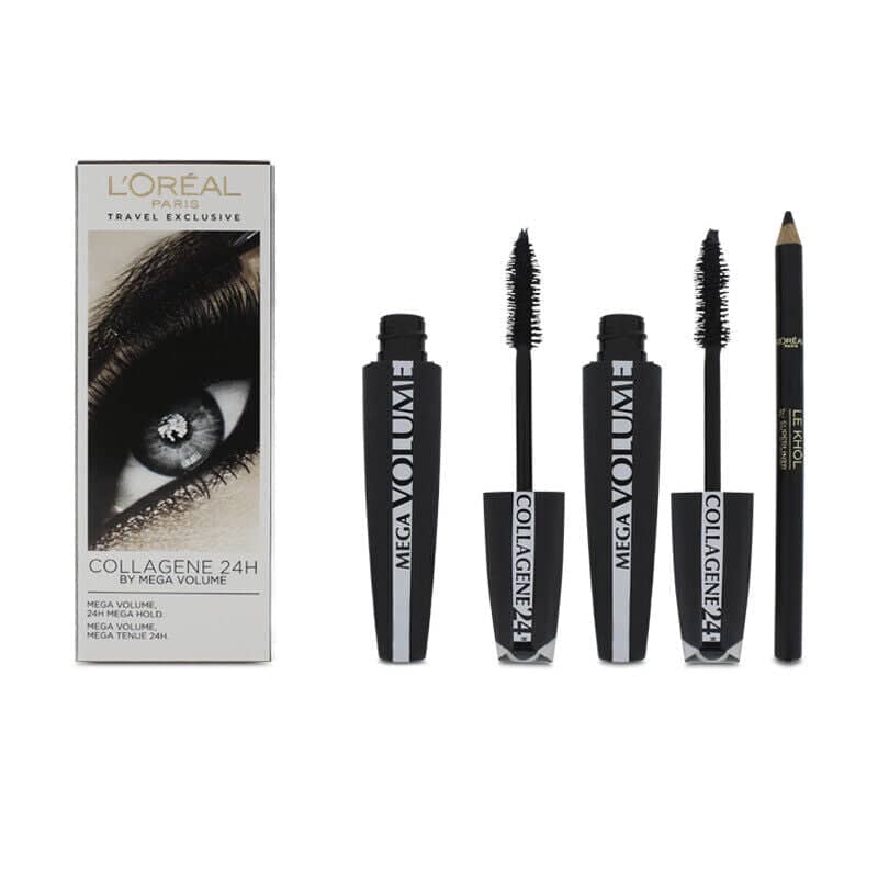 Set L’Oreal Paris: Mega Volume Collagene 24h Extra, Mascara, Nero, 2 pezzi, 9 ml + Contour Khol, Eyeliner Kohl, Nero, 1,2 g