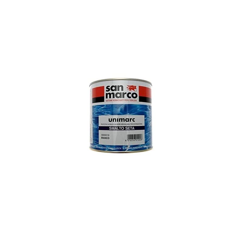 UNIMARC SMALTO SETA è un prodotto idrodiluibile di elevata qualità a base di resine acriliche in dispersione acquosa e pigmenti coloranti ad alta solidità alla luce – Le resine acriliche di cui è composto, conferiscono al prodotto ottima resistenza agli agenti atmosferici, elevata resistenza all’ingiallimento e buona pienezza, dilatazione e adesione su svariati tipi di supporto – UNIMARC SMALTO SETA è inodore e non infiammabile, pertanto risulta particolarmente idoneo per le applicazioni in ambienti interni poco aerati. Come tutti i prodotti della linea UNIMARC risulta di facile applicazione ed estremamente rapido nell’essiccazione – UNIMARC SMALTO SETA è indicato per finiture di ottima qualità su supporti esterni e interni in ferro, lamiera zincata, leghe leggere, legno, plastica e superfici murali interne – Attrezzi per utilizzo pennello,rullo e spruzzo – Diluzione con acqua – Diluzione a pennello o rullo 0-5% – Diluzione a spruzzo 10-15% – Resa 12-14 m²/l per strato – Strati 2 –