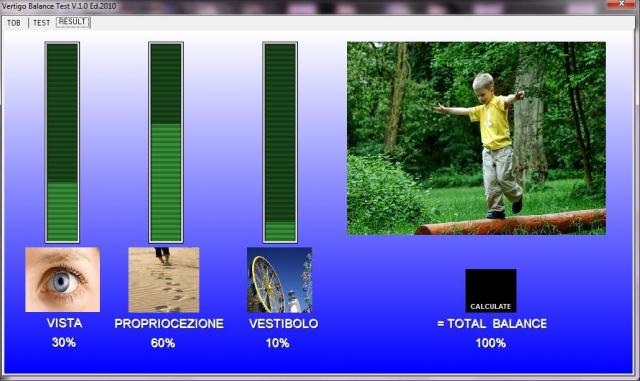 Con i dispositivi della linea Vertigo Postural Training hai a disposizione un sistema di controllo computerizzato e di allenamento personalizzabile.lt;brgt;lt;brgt;Il sistema Vertigo ti permette di aumentare lrsquo;efficacia del training controllando la correttezza e lrsquo;intensitagrave; dellrsquo;esercizio.lt;brgt;lt;brgt;Il cliente acquisteragrave; maggiore capacitagrave; di equilibrio lavorando sulla tonicitagrave; e sul controllo della muscolatura posturale.lt;brgt;lt;brgt;lt;brgt;Controllo posturalelt;brgt;Lrsquo;organismo umano interagisce continuamente con l#039;ambiente esterno attraverso l#039;elaborazione di un comportamento adattativo. Questo egrave; il risultato di processi ciclici che si possono equiparare a sistemi di controllo interagenti e legati tra di loro. I comportamenti adattativi sono dei meccanismi di autoregolazione che avvengono spesso automaticamente e non interagiscono con il campo di coscienza della persona. Alcuni di questi meccanismi sono regolati dai sistemi neurovegetativo, endocrino ed immunitario. A volte l#039;indipendenza di questi processi dalla coscienza puograve; mancare: ad esempio, dopo una corsa si puograve; percepire il cuore battere piugrave; forte, oppure se un organo ha un problema si puograve; percepire dolore. Il Sistema Posturale Fine presiede al controllo ed alla regolazione dell#039;equilibrio dell#039;uomo, mantenendolo automaticamente ed istantaneamente allrsquo;interno della base di appoggio. Quando la persona egrave; aiutata a comprendere gli ingressi sensoriali posturali puograve; agire per modificarli, formando un sistema elemen are di biofeedback. Il Sistema Vertigo Postural Training egrave; un sistema di biofeedback di supporto allrsquo;allenamento dei sensi deputati al mantenimento dellrsquo;equilibrio: Vista, Propriocezione,Vestibolo.lt;brgt;lt;brgt;Il software calcola automaticamente in base allrsquo;andamento dei quattro test: Occhi Aperti, Occhi Chiusi, Occhi Aperti su piattaforma con gomma morbida, Occhi Chiusi su piattaforma con gomma morbida.lt;brgt;lt;brgt;Esempio: Bersagli a Cerchio lt;brgt;In questo esercizio il paziente dovragrave; raggiungere un bersaglio alla volta disposto in modo casuale o secondo uno schema prefissato.lt;brgt;Sullo schermo, oltre al mirino rosso , che corrisponde al paziente, compare un primo bersaglio numerato con il numero 1, che scompare soltanto dopo essere stato colpito. Immediatamente ne appare un altro numerato con il numero 2 ed anch#039;esso scompare soltanto dopo essere stato colpito. lt;brgt;L#039;esercizio prosegue con la comparsa di un bersaglio alla volta fino al dodicesimo. Raggiunto il dodicesimo bersaglio l#039;esercizio termina.lt;brgt;Ersquo; possibile inserire un distrurbo pseudocasuale per incrementare la difficoltagrave; visiva.lt;brgt;Il test puograve; essere attivato sia in condizioni statiche PEDANA VSP400 che dinamiche PEDANA DS4.