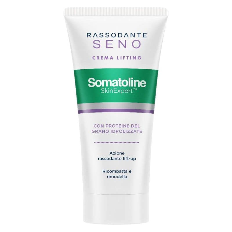Somatoline Cosmetic Lift Effect Rassodante Seno Descrizione Trattamento anti età in crema che tonifica la pelle e rimodella i tessuti. La sua formula contiene Estratto di Kigelia africana, Proteine del Grano Idrolizzate ed altri attivi cosmetici specifici. Dona un effetto tensore immediatamente percepibile che rende la pelle più levigata e tesa. Rassoda la pelle, migliorando l’elasticità e il tono cutaneo. Lascia la pelle idratata, morbida e vellutata. Formula: – texture in crema, morbida e avvolgente. – note speziate e fiorite nella profumazione. – senza parabeni. – dermatologicamente testato. – efficacia clinicamente dimostrata. Risultati: rassoda e tonifica la pelle del seno, con un effetto lifting e rimodellante in 4 settimane*. Effetto lift up di risollevamento del seno in 8 settimane*. *Test clinico strumentale condotto su 24 donne tra 40 e 55 anni che presentavano lassità lieve-moderata a livello del seno. Efficacia valutata comparando i risultati ottenuti dopo 4 settimane di trattamento. Lascia la pelle liscia e levigata. Modalità d’uso Applicare 1 o 2 volte al giorno per almeno 4 settimane. Ideale per contrastare la perdita di elasticità e di tono del seno conseguente a gravidanze, cambiamenti ormonali e invecchiamento cutaneo. Componenti Aqua, cyclopentasiloxane, C-12-15 alkyl benzoate, caprylic/capric triglyceride, Simmondsia chinensis seed oil, oleyl oleate, cetearyl olivate, hydrogenated starch hydrolysate, simethicone, sorbitan olivate, Butyrospermum parkii butter, glycerin, PEG-8, cetearyl alcohol, Spilanthes acmella flower extract, hydrolized elastin, Kygelia africana fruit extract, Quillaja saponaria bark extract, Macrocystis Pyriferia Extract, Hydrolized wheat protein, Dictyopteris membranacea extract, dimethiconol, PVP, menthol, methyl lactate, acrylates/C10-30 alkyl acrylate crosspolymer, xanthan gum, phenoxyethanol, imidazolidinyl urea, parfum, propanediol, sodium hydroxide, disodium EDTA. Formato Tubo da 75 ml. Cod. R906694