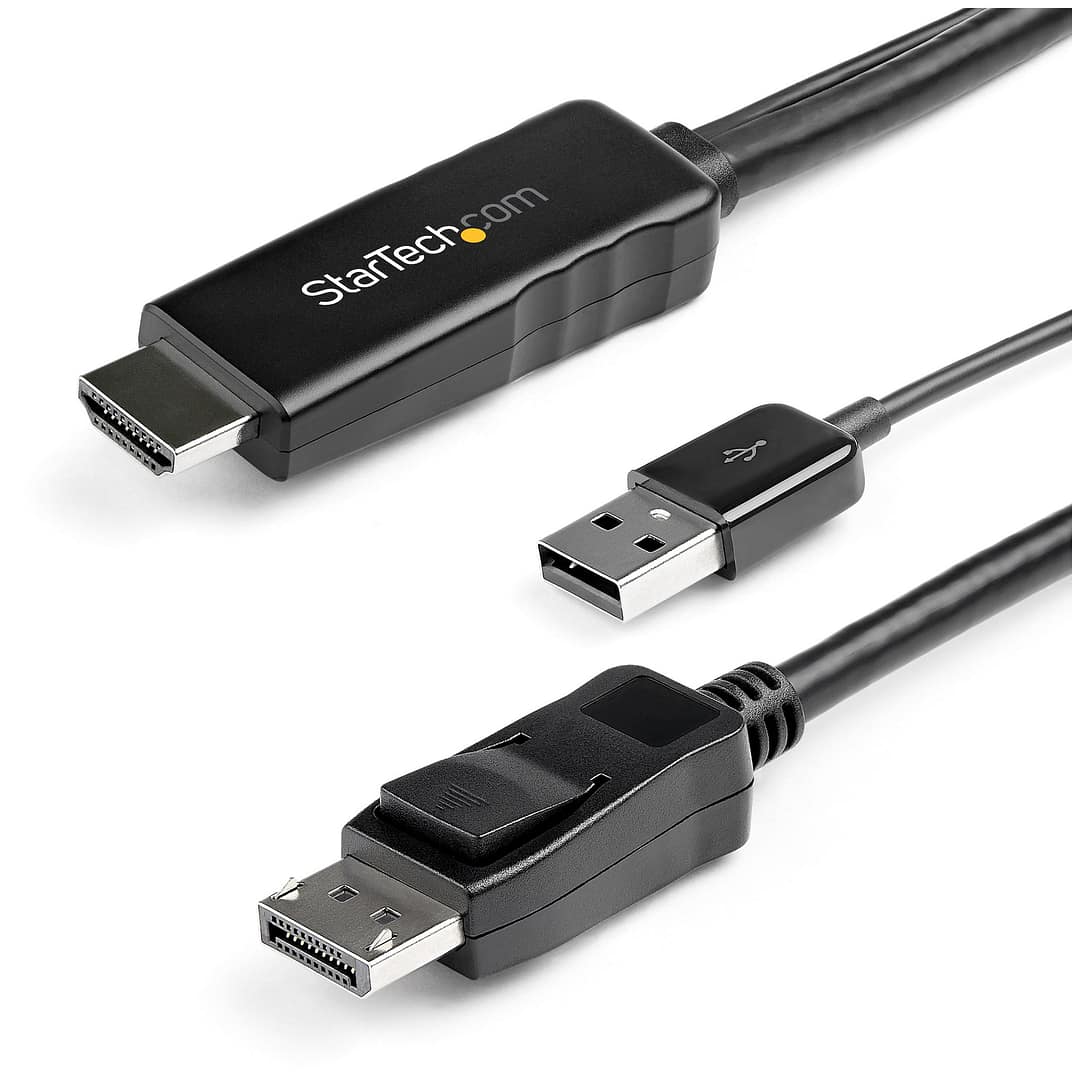 Cavo attivo da HDMI a DisplayPort | HDMI 1.4 | DisplayPort 1.2 | Alimentazione USB | Garanzia di 2 anniQuesto cavo da 2 m da HDMI a DisplayPort con alimentazione USB consente di collegare una sorgente video HDMI, come un computer portatile, un desktop, un lettore Blu-ray o una fotocamera, a un monitor o a un display DisplayPort senza bisogno di cavi video aggiuntivi.Questo cavo adattatore è dotato di connettori maschi, che consentono di collegare la sorgente video direttamente al display senza bisogno di un adattatore o di cavi aggiuntivi. Questo cavo adattatore è dotato di connettori maschi, che consentono di collegare la sorgente video direttamente allo schermo senza bisogno di un adattatore o di cavi aggiuntivi.Comoda connettivitàIl cavo convertitore attivo da HDMI 1.4 a DisplayPort 1.2 garantisce un’installazione plug-and-play e una semplice configurazione senza bisogno di software o driver. L’adattatore è alimentato da una porta USB, quindi non sono necessari adattatori di alimentazione esterni.Eccezionale qualità dell’immagineCon il supporto per il 4K a 30Hz, si ottengono immagini nitidissime e cristalline, più ricche e realistiche dell’HD tradizionale, con dettagli di gran lunga superiori. Il cavo adattatore da HDMI a DisplayPort trasmette contenuti Ultra HD al monitor DisplayPort e supporta l’audio surround 7.1. L’adattatore da HDMI a DisplayPort è retrocompatibile con gli schermi 1080p e 1440p, ed è quindi l’accessorio ideale per rendere il vostro attuale set-up a prova di futuro per i video 4K.Consigliato dai professionisti IT dal 1985StarTech.com esegue test approfonditi di compatibilità e prestazioni su tutti i suoi prodotti per garantire la conformità o il superamento degli standard del settore e fornire prodotti di alta qualità ai professionisti IT. Grazie alla vasta esperienza sui prodotti, i nostri consulenti tecnici StarTech.com locali lavorano direttamente con i nostri ingegneri StarTech.com per fornire assistenza pre e post vendita ai nostri clienti.L’HD2DPMM2M è coperto dalla garanzia di 2 anni di StarTech.com e dal supporto tecnico gratuito a vita.Il vantaggio di StarTech.com- Comoda soluzione plug-and-play senza cavi aggiuntivi- La conversione attiva da HDMI a DisplayPort trasmette video e audio ad alta definizione dal computer a un monitor DP- Garantisce una qualità dell’immagine eccezionale con il supporto di risoluzioni video fino a Ultra HD 4K – Prodotto nuovo