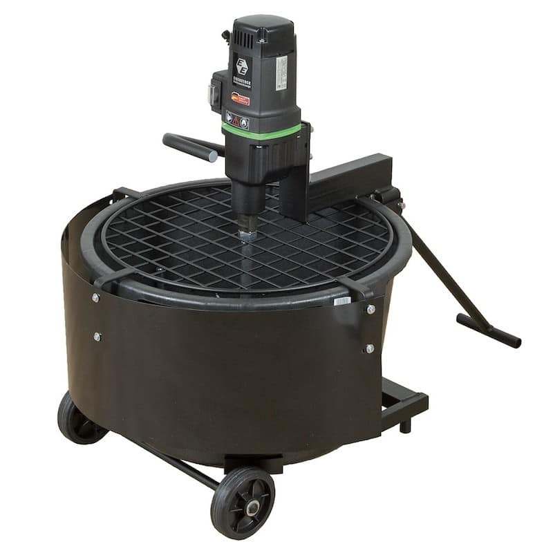 Motore universale robusto, prestazioni molto elevate Interruttore con protezione antipolvere Frizione di sicurezza meccanica Separazione del motore dal telaio senza attrezzi Peso ridotto, design compatto Griglia di protezione, facile riversamento di materiale confezionato in sacchi Braccio della macchina con apertura a cerniera, facile sostituzione del secchio Fino a 50 kg Dotazione: asta miscelazione, pala miscelazione, secchio 65 lt.
