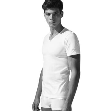 Maglia intima da uomo con scavo a V a manica corta realizzata in 100% cotone pettinato rasato tinta unita. Logo stampato sulla manica..Taglie: 4/M, 5/L, 6/XL, 7/XXLColori: Bianco, Nero, Assortito coloratoNB: se si sceglie la variante colore Assortito, a seconda del quantitativo ordinato saranno inviati colori assortiti tra Nero, Blu e Grigio medio melange.