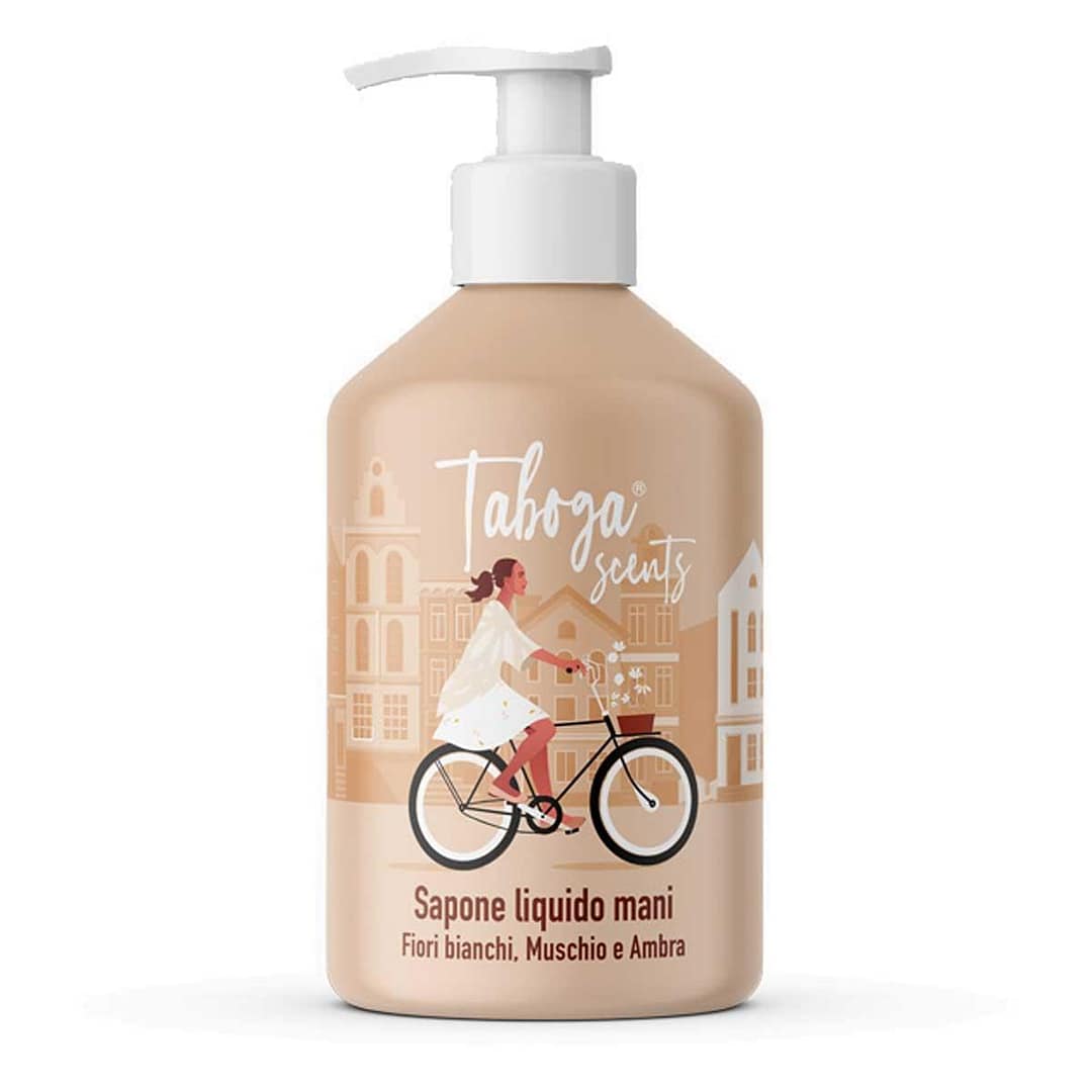 Sapone liquido mani FIORI BIANCHI, MUSCHIO E AMBRA Sapone liquido formulato a pH fisiologico che a contatto con l’acqua crea una soffice schiuma. Arricchito con Gel d’Aloe Bio ed Estratto Naturale di Gelsomino deterge ed idrata con delicatezza le mani avvolgendole con la sua sensuale e romantica fragranza.