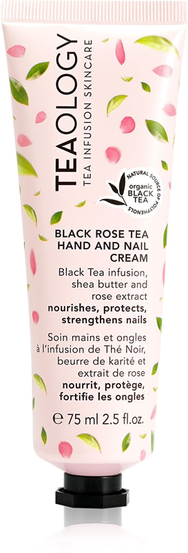 Mano di tè rosa nera e panna per unghie di Teaology. | Un trattamento completo con azione di riparazione, nutrimento e rinforzo per proteggere le mani e le unghie da aggressori esterni e mantenerli sempre idratati, morbidi e profumati. Vantaggi: | La sua consistenza fusione combina l’infusione di tè nero, ricco di polifenoli antiossidanti, burro di karité per nutrire intensamente e estratto di rose con un’azione rilassante e rigenerativa. | La cheratina botanica rafforza le unghie, lasciandole più resistenti e uniformi È ideale per una manicure perfetta, raccomandata anche per gli uomini perché non è grasso e viene rapidamente assorbito.