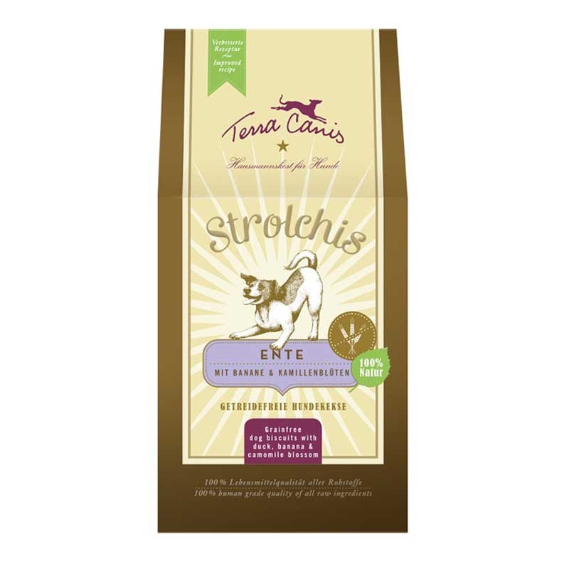 Senza cereali e senza lattosio, Terra Canis Strolchis Lamm mit Spinat & Parmesan è uno snack davvero speciale per Fido: prodotto artigianalmente con una delicata cottura al forno, è composto da tanta carne fresca di muscolo (25%), frutta e verdura, nonché uno speciale SuperFood come la farina di cocco e ingredienti speciali tra cui figurano malva, melissa, olivello spinoso, rosa canina e fiori di ibisco.