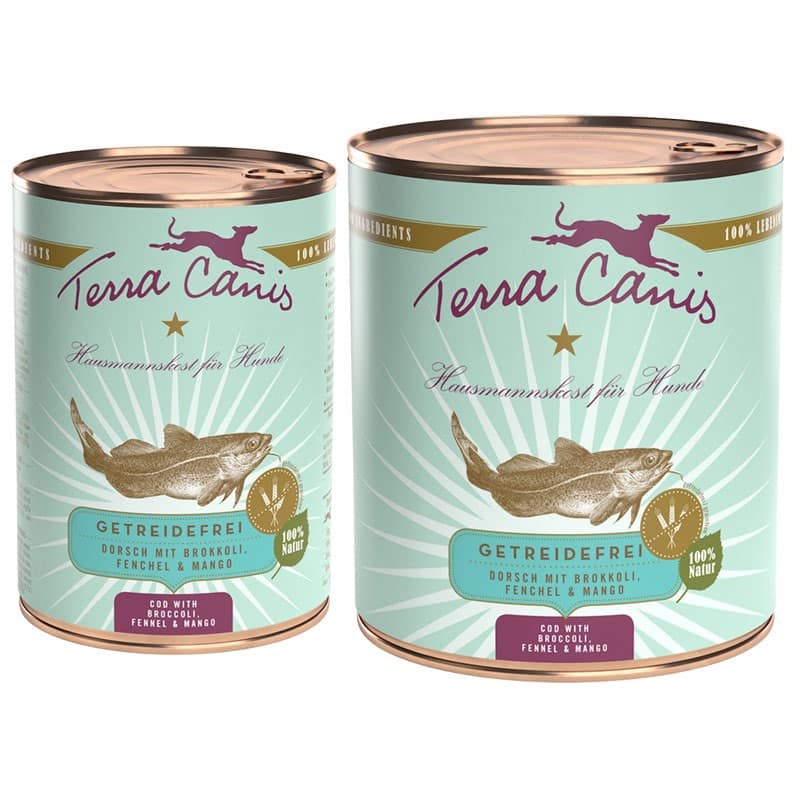 Totalmente ‘grain free’, senza tracce di lattosio e privo di qualsiasi additivo chimico o sintetitico, Terra Canis Getreidefrei Dorsch mit Brokkoli, Fenchel und Mango è uno dei migliori modi per arricchire la dieta di Fido e alimentare il cane in modo naturale.