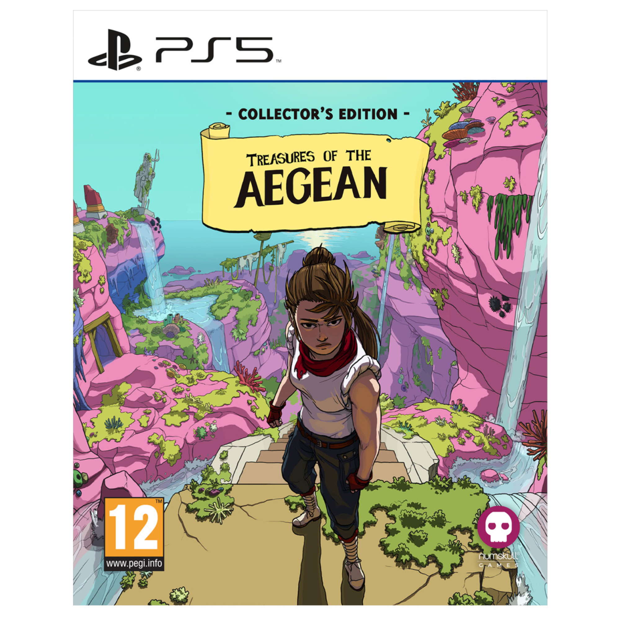 Tutto quello che c’è da sapere su Treasures Of The Aegean PS5! Cosa è successo alla civiltà minoica? Unisciti alla maestra di parkour Marie Taylor e al cacciatore di tesori James Andrew in un thriller storico d’azione per svelare i segreti di un regno dimenticato, tragicamente intrappolato in un loop temporale senza fine. Esplorate un mondo aperto non lineare splendidamente disegnato a mano, recuperate preziose reliquie, esplorate un’isola perduta e raccogliete nuovi indizi a ogni ciclo per concludere un’antica profezia. Risolvete gli enigmi e i misteri che hanno fatto infuriare gli antichi dei, nel tentativo di impedire che la storia si ripeta per sempre. I segreti del cataclisma minoico. Nel 1639 a.C., una potente esplosione devastò la civiltà minoica e inghiottì il luogo di nascita del suo impero: l’isola vulcanica di Thera. La storia sembra ripetersi, poiché l’isola è riemersa e un altro cataclisma è certo. Perché i Minoici erano così avanzati per il loro tempo? Il re Minosse aveva previsto la loro fine? È possibile fermare una nuova eruzione di Thera? C’è solo un modo per scoprirlo! Un’isola sommersa intrappolata nel tempo. Nascosta negli abissi per diversi millenni, l’isola di Thera è piena di tesori storici da raccogliere e misteri da decifrare. Scoprite una cittadella minoica perduta, fatevi strada attraverso una flotta ottomana affondata e aprite le porte di un palazzo sotterraneo, mentre scoprite i dettagli sulle persone che vi hanno vissuto e sul loro tragico destino. Sfruttate una frattura nel tempo per ottenere informazioni su una mappa persistente e risolvete enigmi chiave prima che il mondo esploda e il ciclo ricominci! Tempismo, precisione e risoluzione di enigmi. Preparatevi a un’avventura ricca di azione mentre vi fate strada su un terreno accidentato e impegnativo: surfate su pendii scoscesi, scalate alte pareti, superate ostacoli, dondolate da liane e saltate su fosse profonde per esplorare un mondo aperto disegnato a mano. Ogni angolo dell’isola nasconde un artefatto, un indizio o un pezzo del puzzle che deve essere risolto per salvare il mondo dal disastro. Non siete soli sull’isola… Marie Taylor è l’eroina della storia, una brillante cacciatrice di tesori che lavora con il suo partner, lo storico James Andrew, alla ricerca di antiche reliquie. Questa volta, però, scopriranno di non essere gli unici ad avere a che fare con lo scoop minoico, dato che rivali di vecchia data appaiono sulla scena per resuscitare i fantasmi del passato e complicare ulteriormente le cose. Un thriller storico in edizione da collezione! Preparatevi all’avventura con Treasures of the Aegean Collector’s Edition. Avrete a disposizione una preziosa mappa di stoffa che vi aiuterà a orientarvi, la colonna sonora originale del gioco per aggiungere un tocco musicale alle vostre avventure e un artbook in stile fumetto per una piacevole lettura durante i vostri viaggi. – Prodotto nuovo