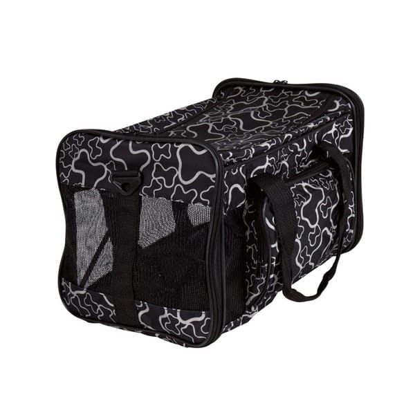 Borsa in nylon per il trasporto dell’animale, con apertura frontale, posteriore e superiore e due tasche. Con tracolla regolabile e staccabile, inserti in rete per una buona aerazione e guinzaglio interno.
