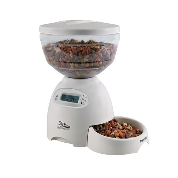 Distributore automatico in plastica per 2,2 Kg di cibo secco. I pasti possono essere programmati fino a 3 volte al giorno, con possibilità di variare le quantità con un minimo di 60ml ad un massimo di 480 ml. Il coperchio è removibile per permettere il riempimento, con contenitore trasparente per controllare la scorta di cibo.