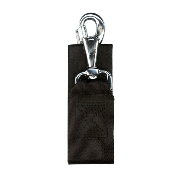 Manigliotto universale per cinture di sicurezza di tutte le automobili (escluso Ford e Volvo). Con moschettone e fettuccia nera.