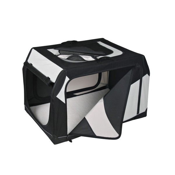 Trasportino in nylon di alta qualità con struttura in metallo, apribile su tre lati con inserti in rete per una buona aerazione. Gli inserti in rete possono essere coperti per proteggere l’animale, il velcro sotto il trasportino evita che questo possa scivolare. Con telo in nylon provvisorio per proteggere il paraurti dai graffi. Ideale anche per esterno grazie alla possibilità di fissarla al suolo con cappi e pioli. Con tasca laterale e supporto per la bottiglia d’acqua. Interno in morbida pelliccetta sintetica.