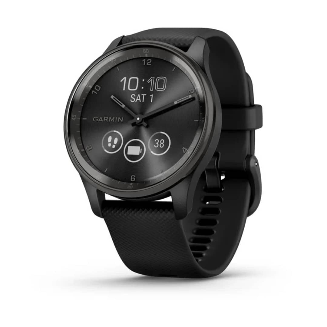Garmin vivomove Trend. Tecnologia del display: LCD, Risoluzione dello schermo: 254 x 346 pixel, Touch screen. GPS (satellite). Peso: 28,3 g. Umidità: impermeabile fino a: 50 m, Materiale cinturino: Silicone, Colore cinturino: Nero – Prodotto nuovo