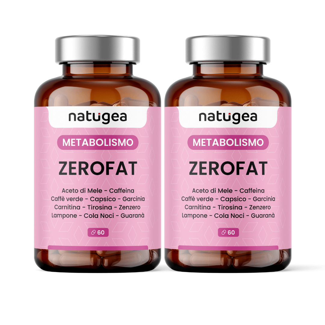 Ciclo completo di 2 mesi al massimo dosaggio. AZIONE BRUCIA GRASSI RAPIDA: L’azione combinata di Caffeina, Carnitina e Aceto di Mele, stimola il metabolismo e la lipolisi, permettendo all’organismo di bruciare più calorie e scomporre i grassi per sprigionare energia, favorendo il dimagrimento. DRENANTE FORTE DIMAGRANTE: Le proprietà diuretiche della Radice di Zenzero, della Cola di Noce, del Lampone e Guaranà, aiutano il corpo a drenare i liquidi in eccesso, diminuendo la ritenzione idrica, il gonfiore e la cellulite. PIÙ ENERGIA E MEMORIA: La tirosina è coinvolta nel metabolismo dei carboidrati e delle proteine. Aiuta a convertire il cibo che mangiamo in energia utilizzabile dal nostro corpo. Inoltre la Tirosina stimola l’attività cerebrale per una maggior performance mentale e fisica, potenziando resistenza, funzioni cognitive e memoria. CONTROLLA IL SENSO DI FAME: Aiuta ad accelerare il processo di perdita di peso e controllare meglio l’apporto calorico giornaliero aumentando il senso di sazietà. Per ottenere migliori risultati con Zerofat è fondamentale dedicarsi a un’attività fisica regolare e seguire uno stile di vita sano ed equilibrato. QUALITA’ PREMIUM E MADE IN ITALY: prodotto notificato con codice di Registrazione n. 2023/163780. Realizzato interamente in Italia seguendo i più rigorosi e rigidi standard di Qualità e Sicurezza che contraddistinguono i prodotti Made in Italy. Il prodotto è privo di OGM, metalli pesanti, ormoni, antibiotici e glutine.